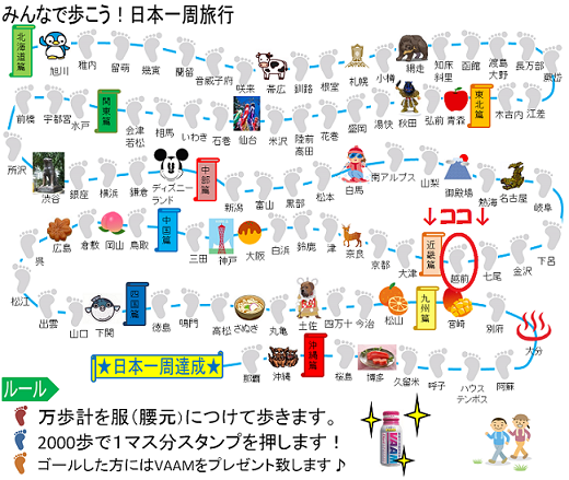 みんなで歩こう!万歩計で日本一周旅行