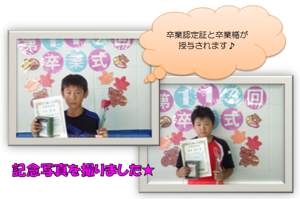 みんないい笑顔で、記念写真が撮れました♪卒業生ひとりひとりに、「おめでとうございます!」と言ってからお花を渡してくれました♪ 鈴木くん、ありがとうー!!2人も大きな声で、素晴らしいあいさつをしてくれました!ありがとうございました♪♪次回の卒業式は、12月に開催予定です★卒業目指して頑張りましょうー!!(*^_^*)