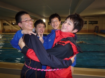 リレーの優勝したメンバーは、メダルを持ってくるように言ったのに…忘れたそうです。そして、仲良くフラフープに入っての1枚
