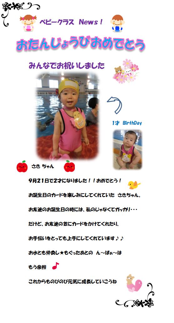 ♪ベビークラス News♪ お誕生日お祝いしました!‘さきちゃん’