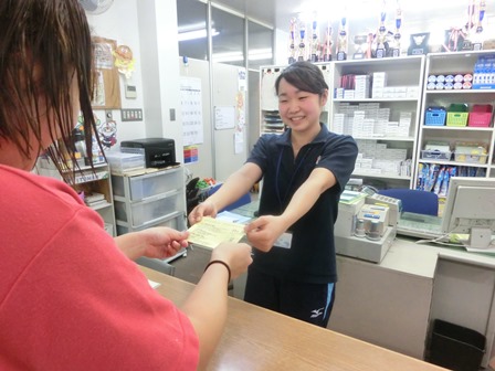 新入社員の越中先生は、コーチの他にフロント研修として週に数回