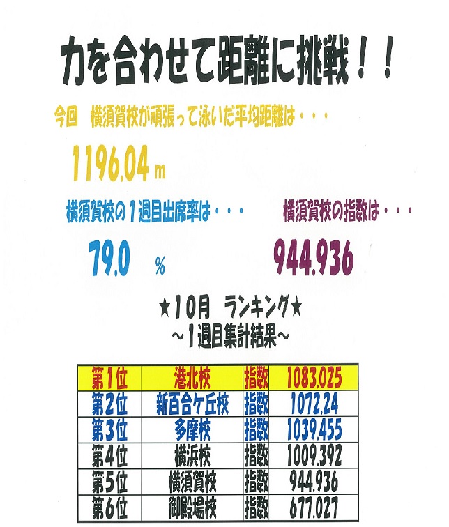 20分間リレー(クロールキック)が10月1日〜10月7日で行われました。