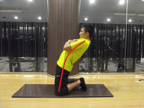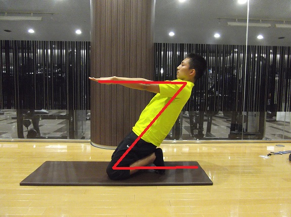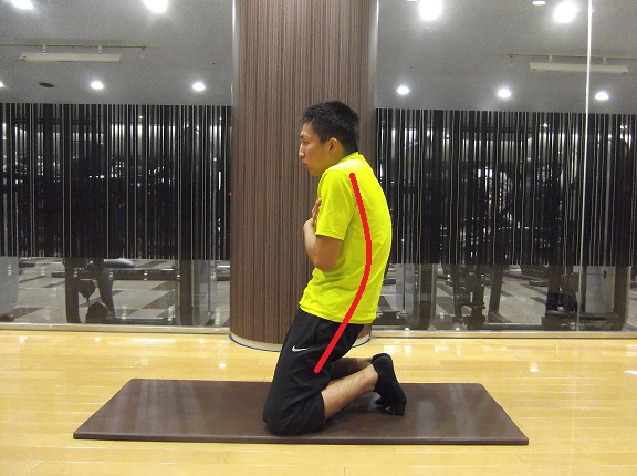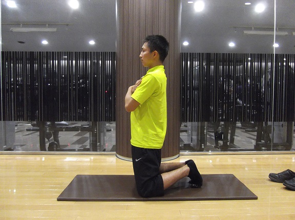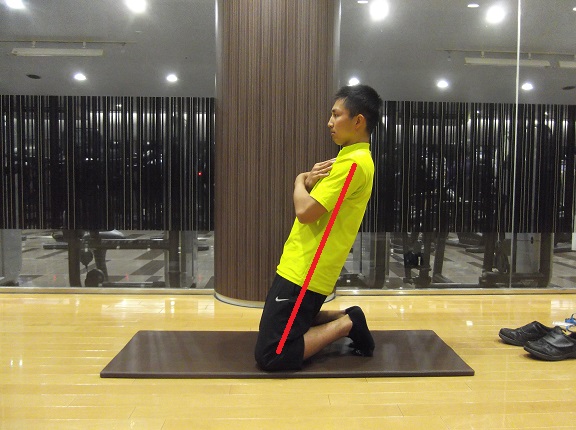 1・立て膝になり、上体を真っ直ぐ伸ばします