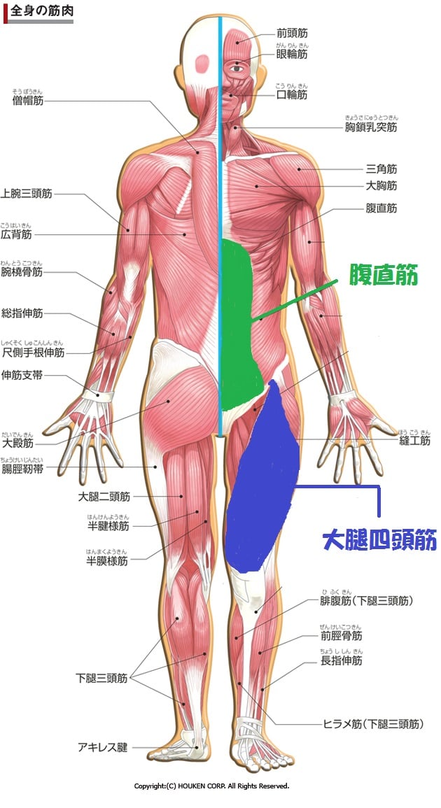 大腿四頭筋(太もも前面)・腹直筋(お腹)がトレーニングされます