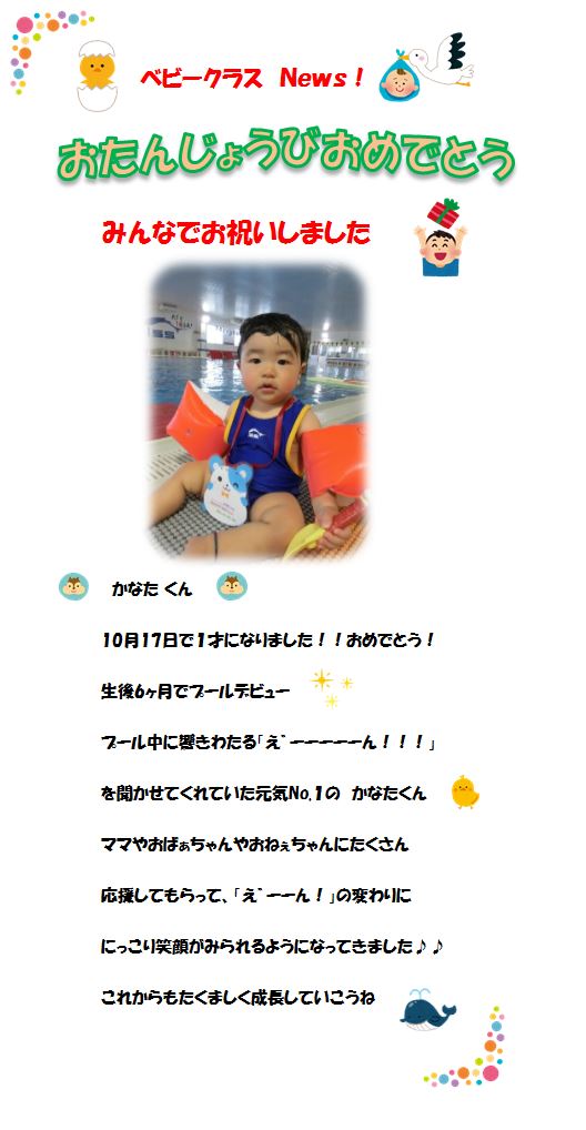 ♪ベビークラス News♪ お誕生日お祝いしました!! ‘かなた くん’