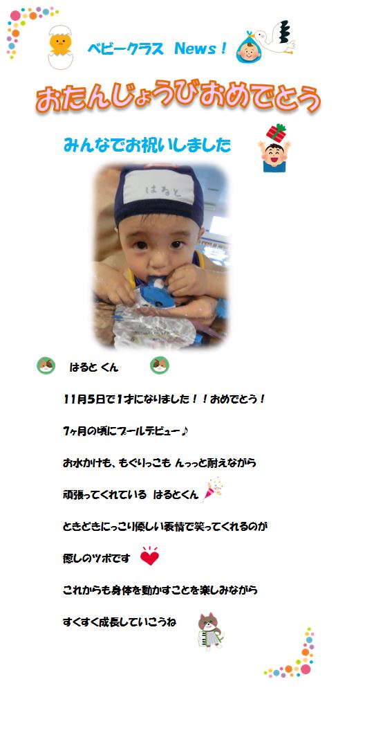♪ベビークラス News♪ お誕生日お祝いしました!! ‘はるとくん’