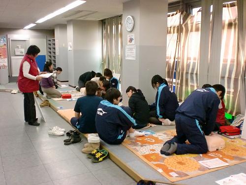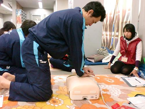 心肺蘇法、AEDの使い方、回復体位などの練習をみっちり行ないました。