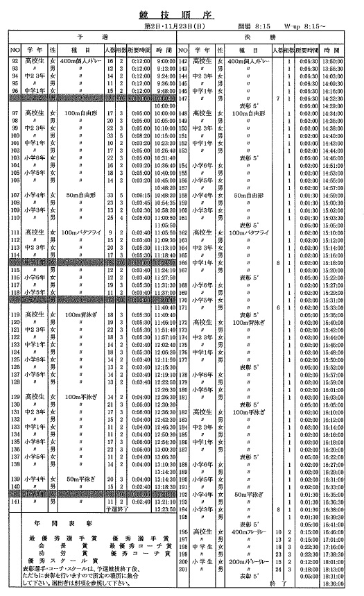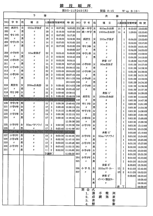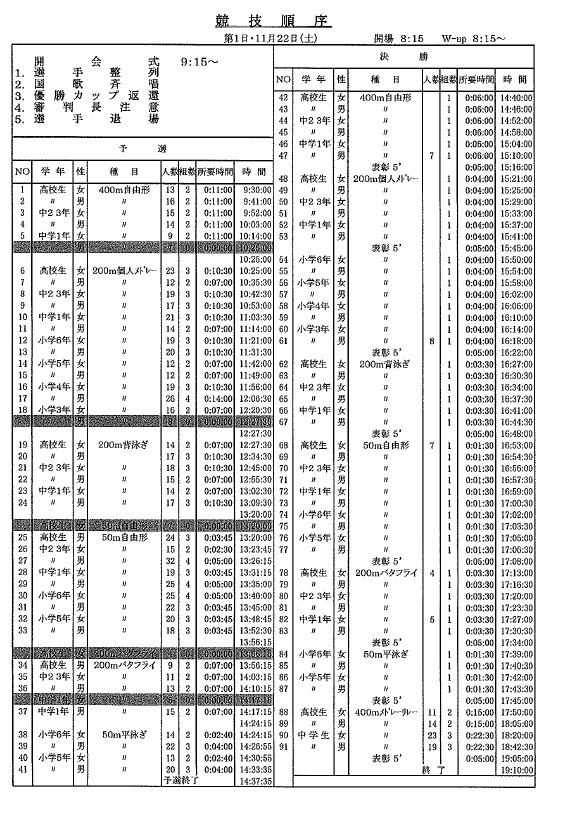 今回は、競技時間の予定を