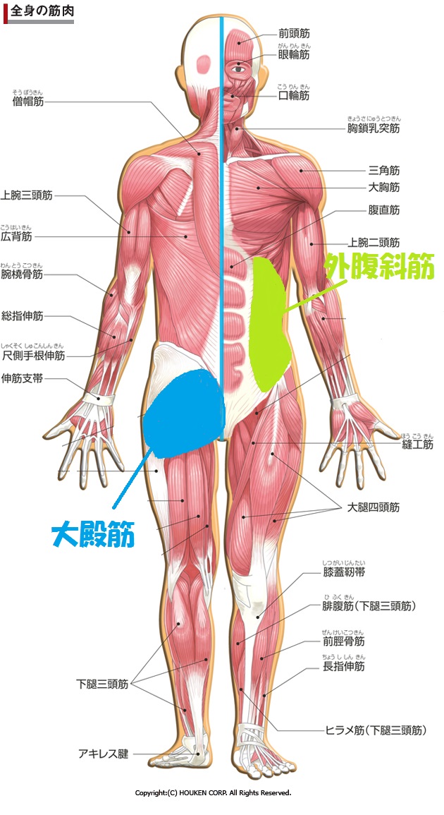 大殿筋(おしり)・外腹斜筋(横腹)がトレーニングされます
