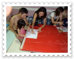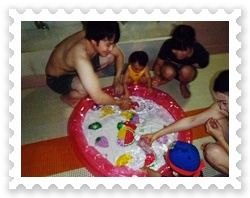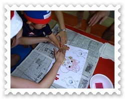 早く色をつけ終わったお友達は、折り紙と釣り、ペットボトルで遊んじゃおう!!折り紙はお父さん、お母さんが頑張ってました。