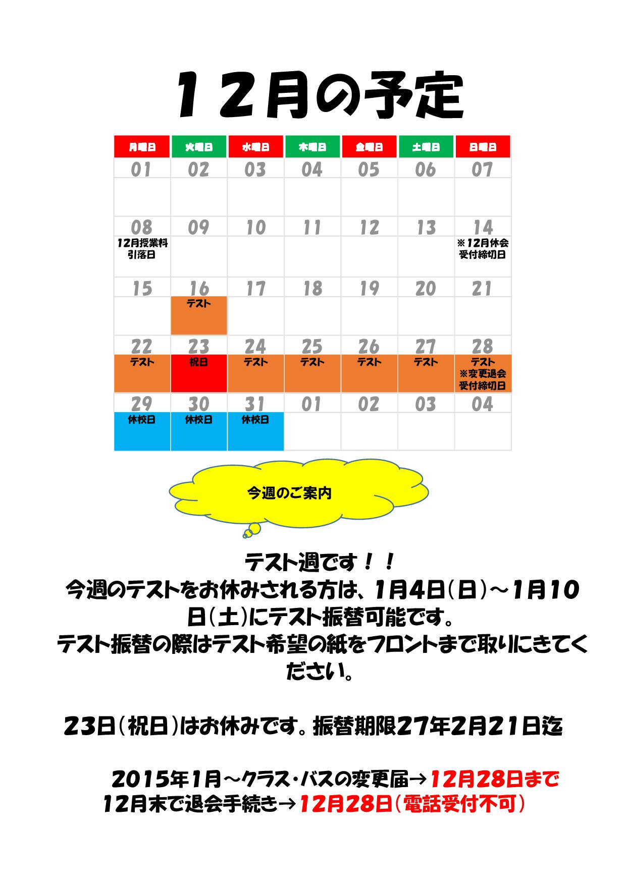 【スイミング会員様】今週の予定