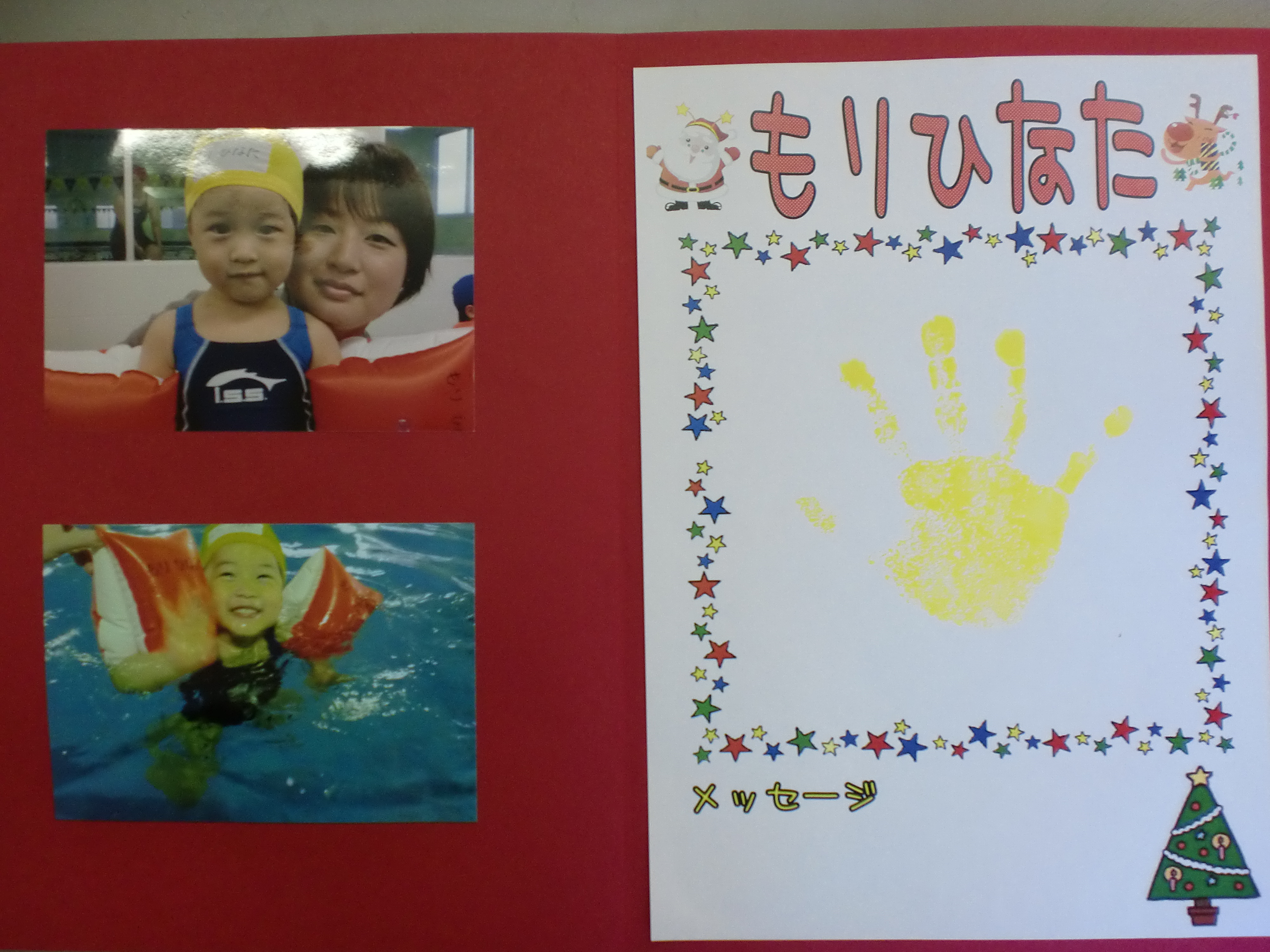 中は、ママとの写真・プールで泳いでいる写真♪ 手形もとりました