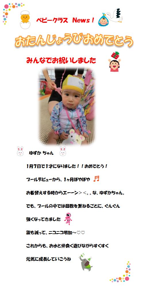 ♪ベビークラス News♪ お誕生日お祝いしました!‘ゆずか ちゃん’