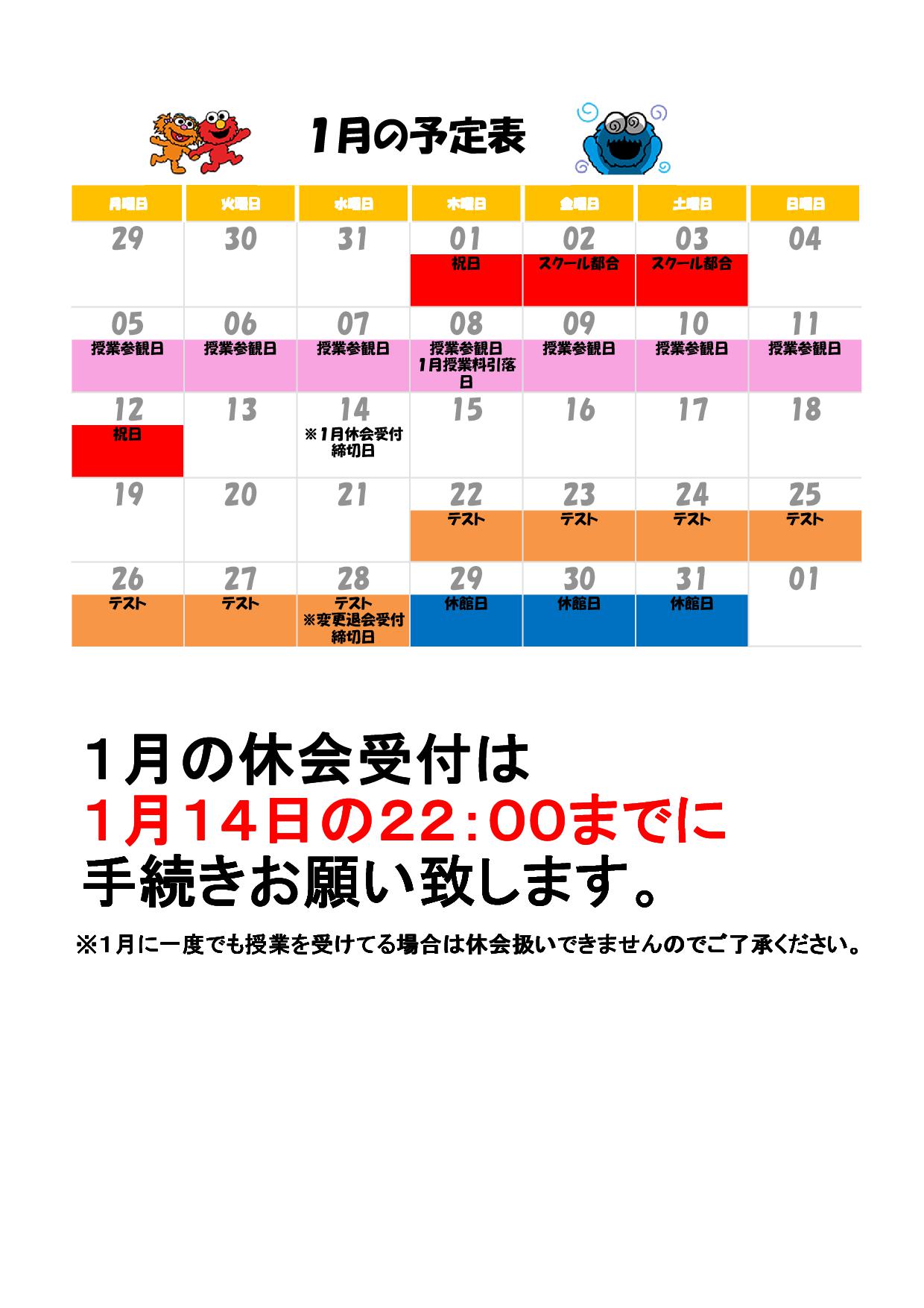 1月休会される方へ