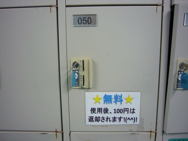 やむえず、持ってきた時は更衣室の100円リターン式ロッカーを使いましょう!!