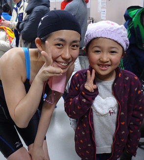泳いだ後のいい笑顔!><