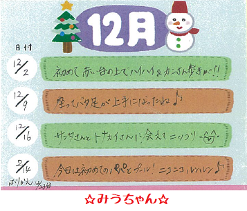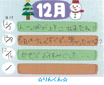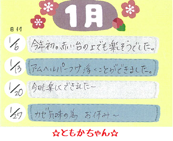 今回は【火曜日クラス】に在籍しているお友達の日記です。