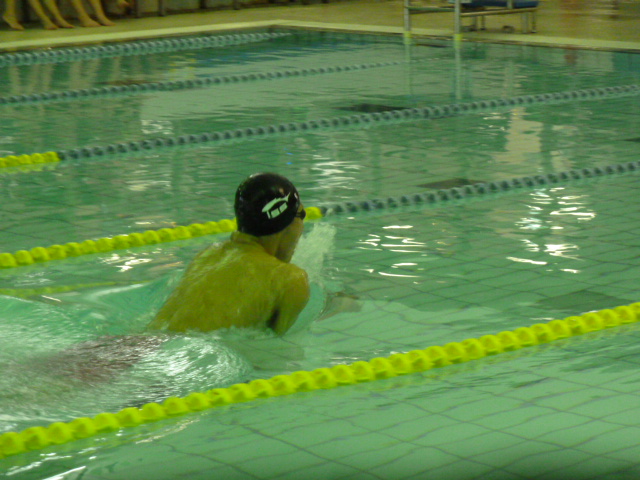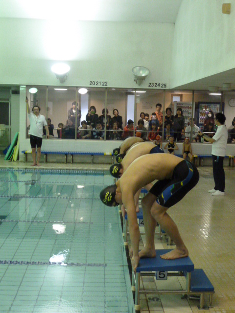 選手が泳いでいました、速くてビックリしたかな?