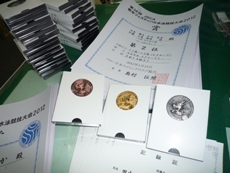 メダルと賞状の山です。仕分けが大変![]()