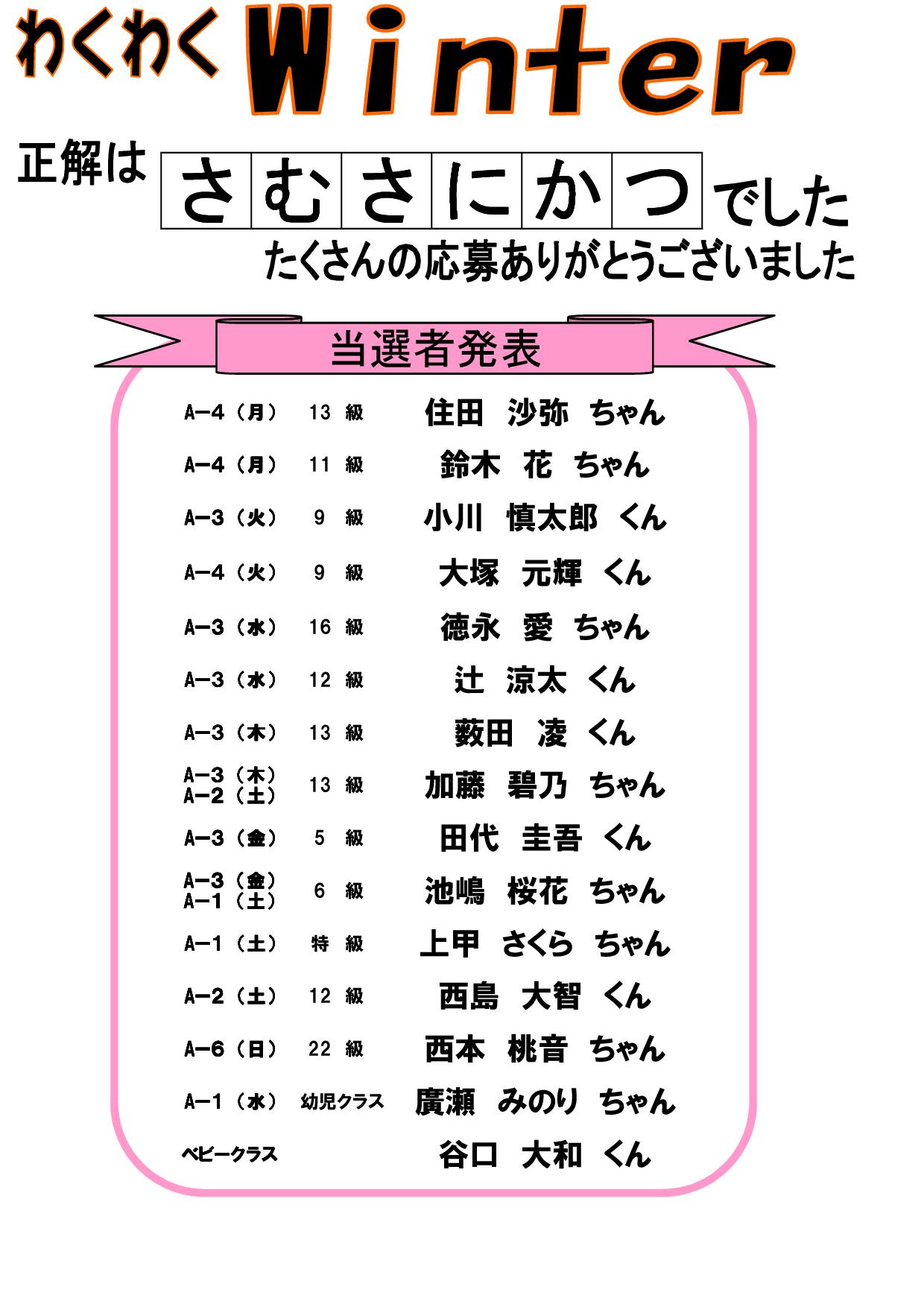 わくわくWINTER当選者発表!