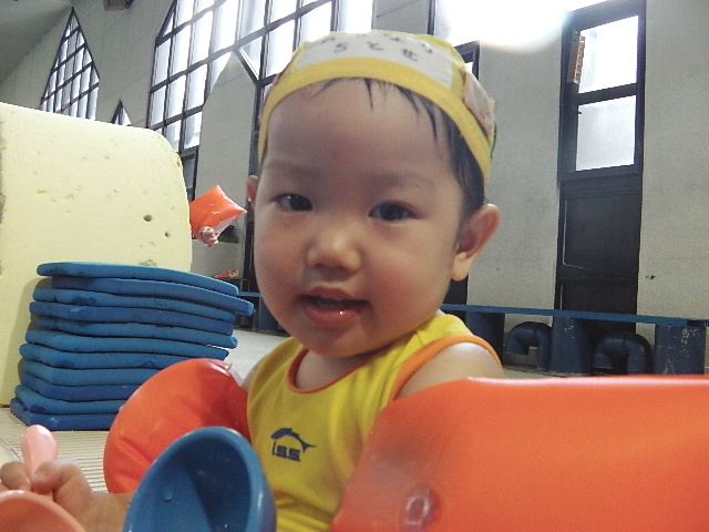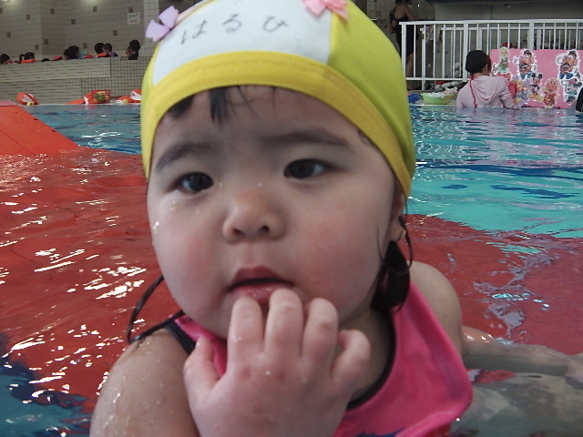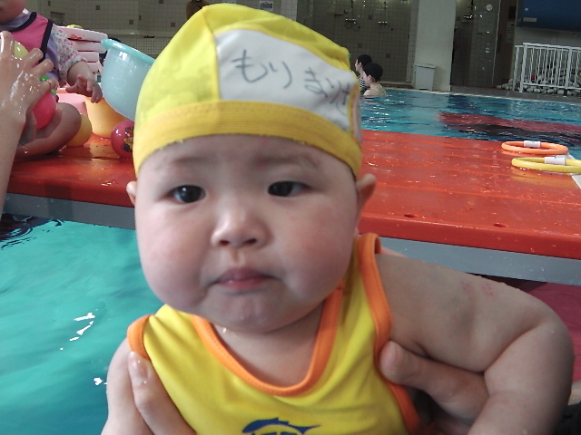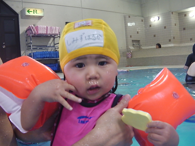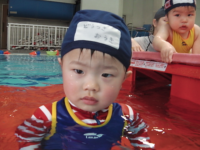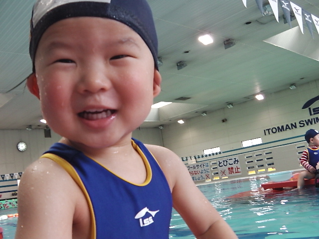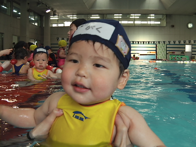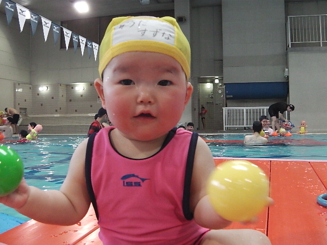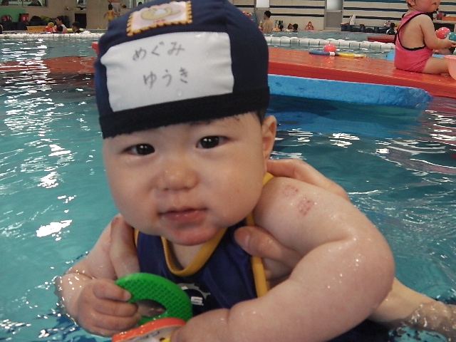 今はプール大好きでニコニコして一人で受けるようになったね。
