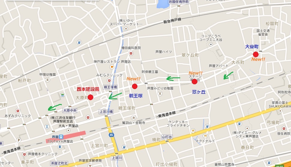 今まではJR芦屋駅の手前まででしたが、大谷町のあたりまでバスが