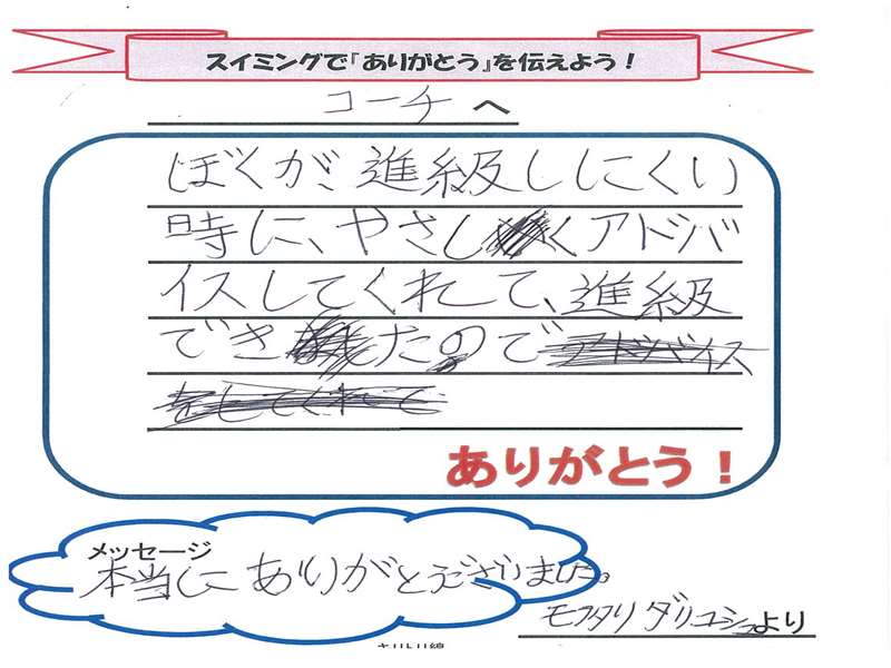 奈良ブロックの特習クラスを対象に『ありがとうを伝えよう!』のイベントを行いました。参加してくれたみんな、ありがとうございました!書いてくれたお友達の『ありがとう!』を紹介いたします!(^^)!
