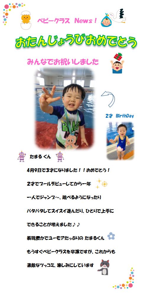 ♪ベビークラス News♪ お誕生日お祝いしました!‘たまるくん’