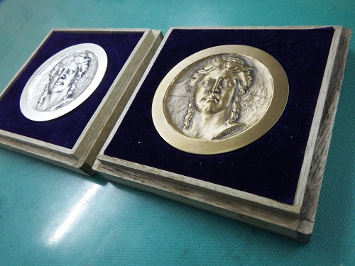 現在の選手権のメダルとは違い、首にかける紐がないようです!