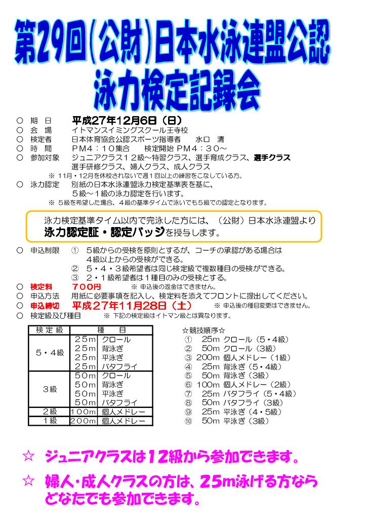 こんにちは(^^)/本日より王寺校では泳力検定会のお手紙を配布しております!
