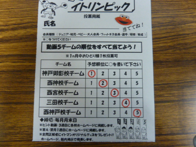 1位 神戸御影校 2位 西神校 3位 西宮校 4位 三田校 5位 西神戸校 でした !