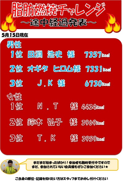 5月1日から始まった「脂肪燃焼チャレンジ」ですが