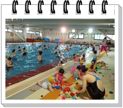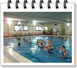 水の中(赤い台)の上でも一緒にアクアビクスを踊っているお友達もいました。