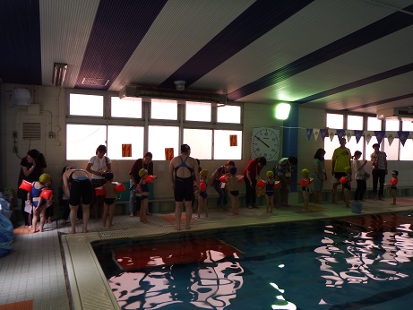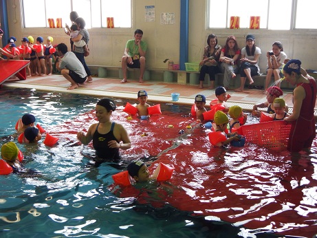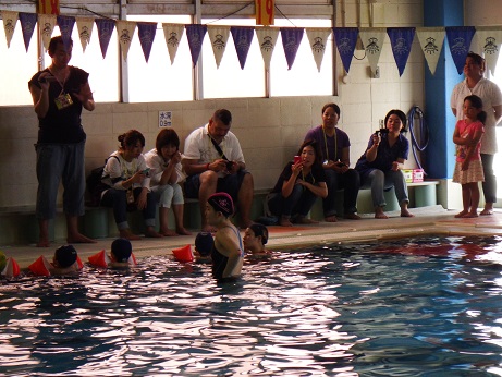 イベントは、プールサイドに保護者の方が入って見ていただくことが出来ました