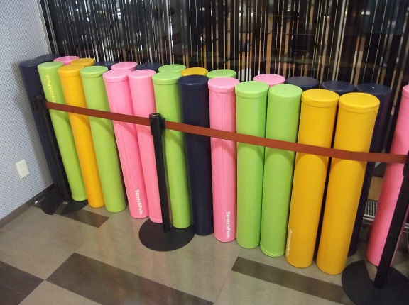 ぼろぼろの段ボールケースに入ったストレッチポール…