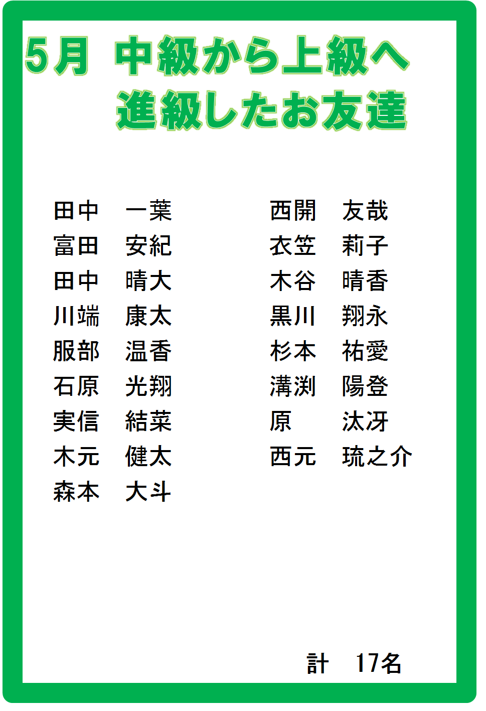 上級へ17名のお友達が
