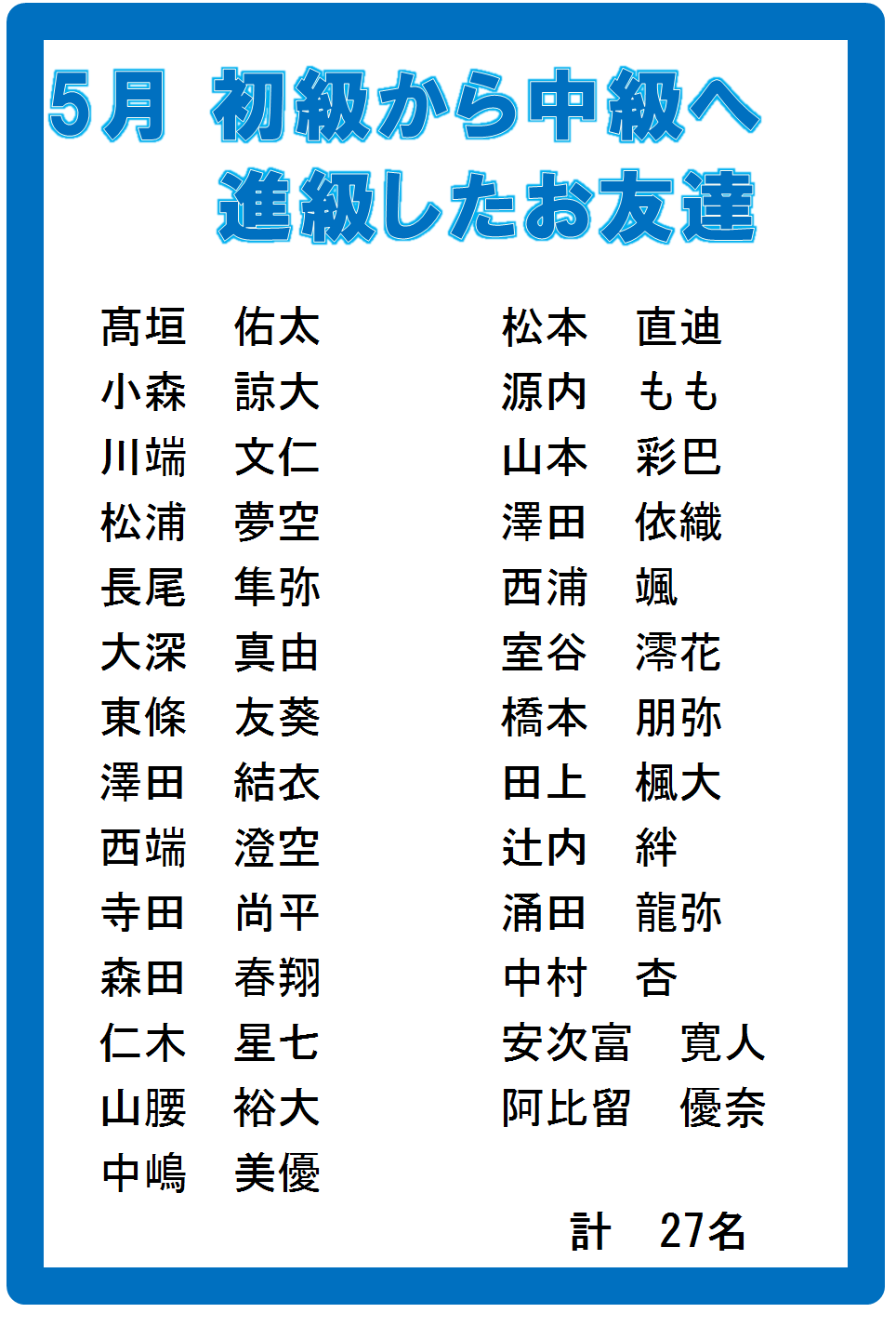 5月は中級へ27名