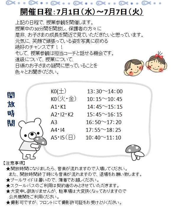 授業参観のお知らせ