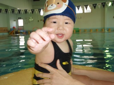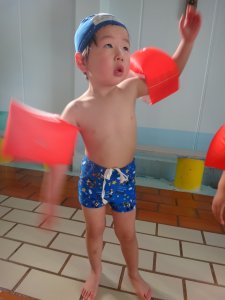 そして幼児クラスに進む為、初めて一人でプールに入ってみました!!
