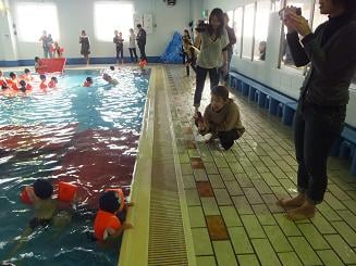 普段まじかで見ることができない上級クラス、平泳ぎクラスの