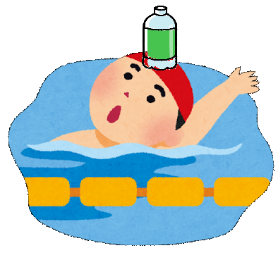 ・ペットボトルをおでこに乗せて背泳ぎで泳ぎます。