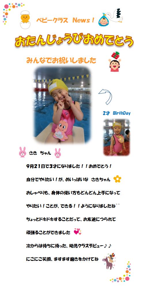 ♪ベビークラス News♪ お誕生日お祝いしました!!‘さきちゃん’