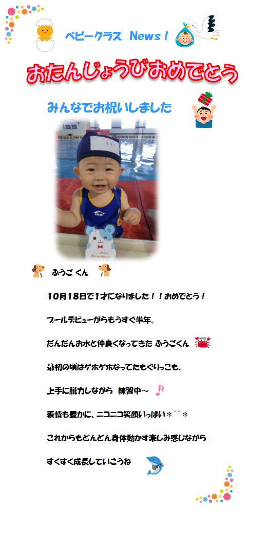 ♪ベビークラス News♪ お誕生日お祝いしました! ‘ふうごくん’