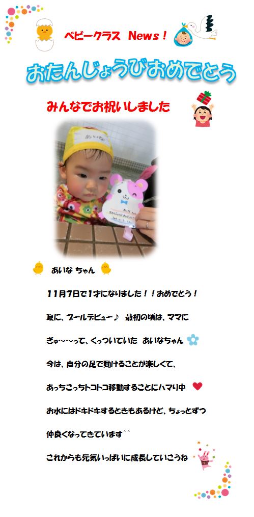 ♪ベビークラス News♪ お誕生日お祝いしました!‘あいなちゃん’