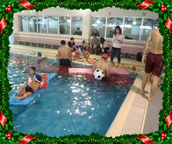 さあ今年もサンタさんがプールに来てくれましたよ〜!!
