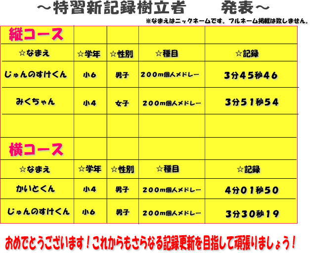 ☆特習新記録発表☆