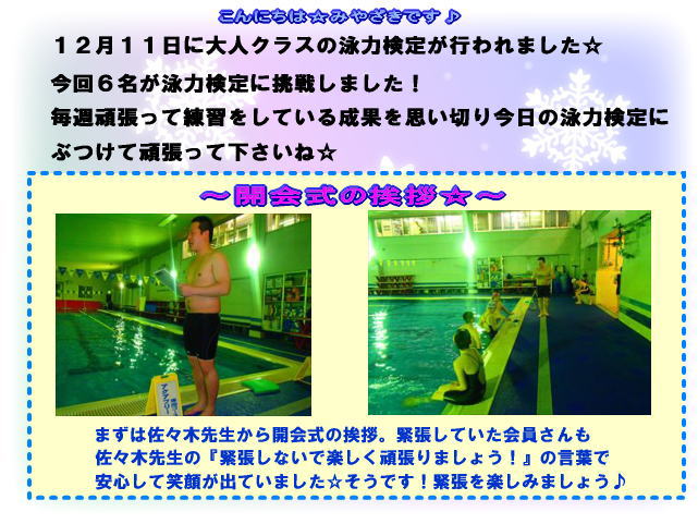 ☆泳力検定!☆<大人クラス(夜)>