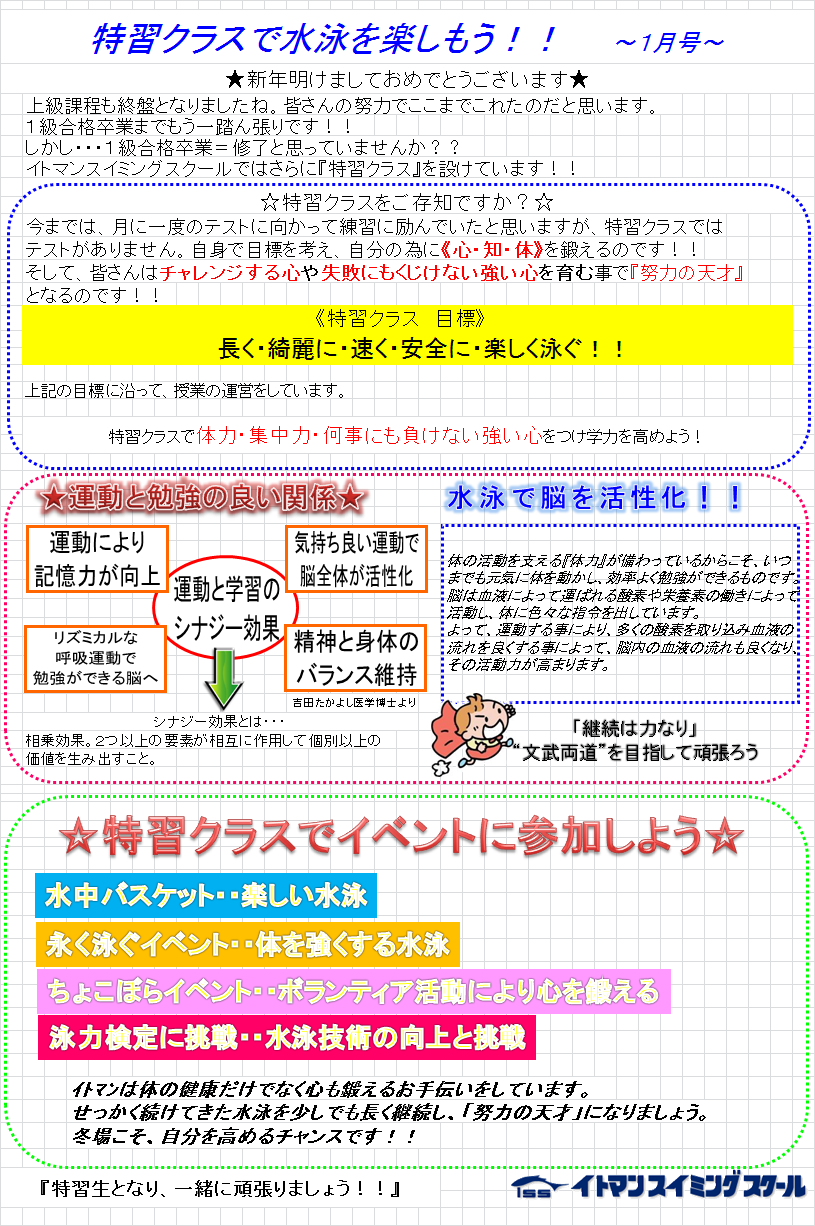 まだまだ水泳を楽しめる「特習クラス」があります!!