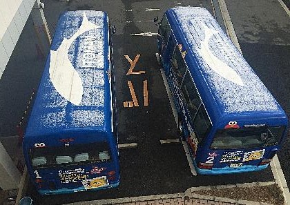 スクールバスの上もほんのり雪が積もりました