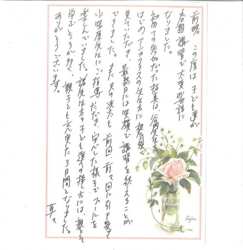 短期体験教室を受講された保護者の方より、下記のようなお手紙を頂きました。